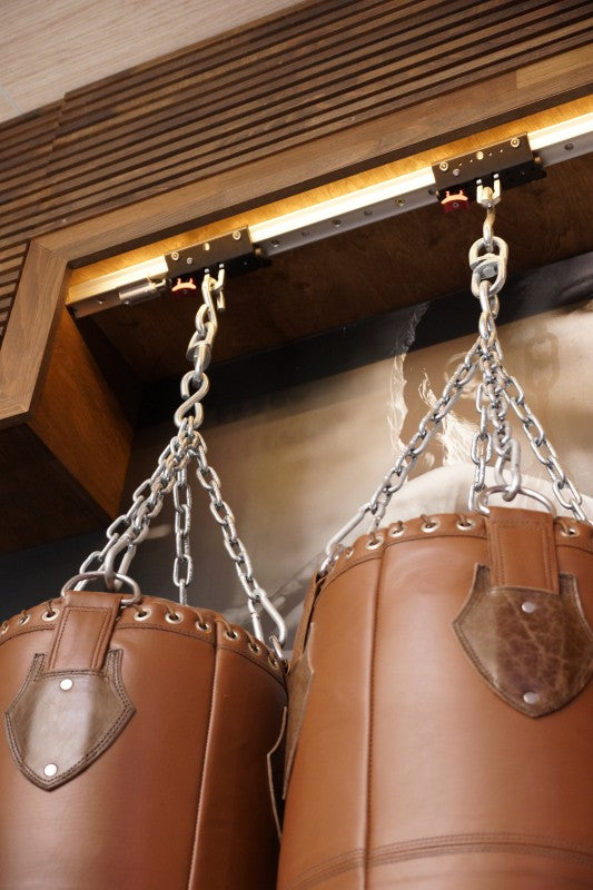 Oltre ai nostri sacchi da boxe e guantoni, offriamo anche diversi sistemi di montaggio per il soffitto e la parete.